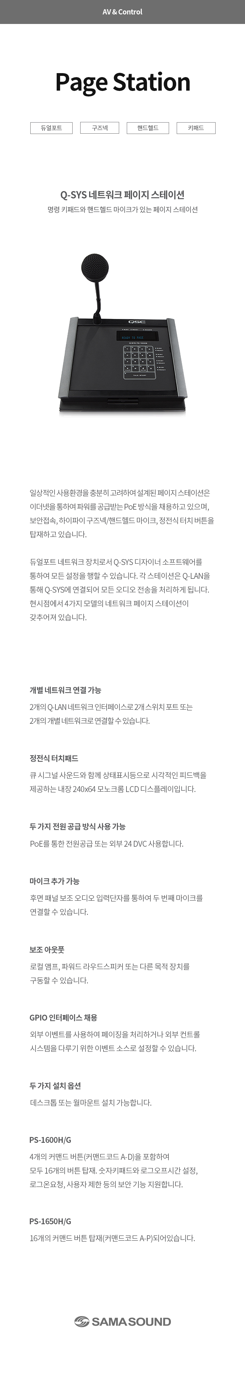 PS Series - Q-SYS 페이지 스테이션