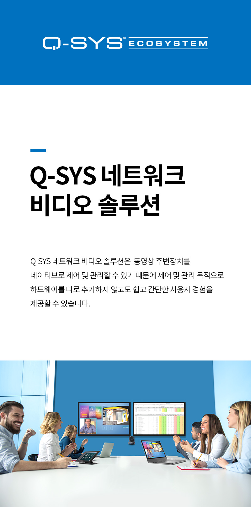 Q-SYS NC 시리즈 회의 카메라는 Q-SYS 플랫폼에 기본적으로 고품질 비디오 피드를 제공합니다. 선택할 수 있는 세 가지 모델이 있는 이 네트워크 카메라는 모든 규모의 회의 공간을 위한 간단하고 확장 가능한 협업 비디오 솔루션을 제공합니다. Q-SYS OS로 구동되는 NC 시리즈는 모든 Q-SYS 시스템에 원활하게 통합되어 복잡한 프로그래밍이나 비디오 매트릭스 하드웨어 없이도 네트워크 어디에서나 카메라 피드 라우팅을 쉽게 할 수 있습니다. 이러한 카메라 비디오 피드는 Q-SYS AV 주변 장치를 통해 Microsoft Teams, Zoom, Google Meet 및 Cisco Webex를 포함한 대부분의 최신 화상 회의 애플리케이션에 전달됩니다.