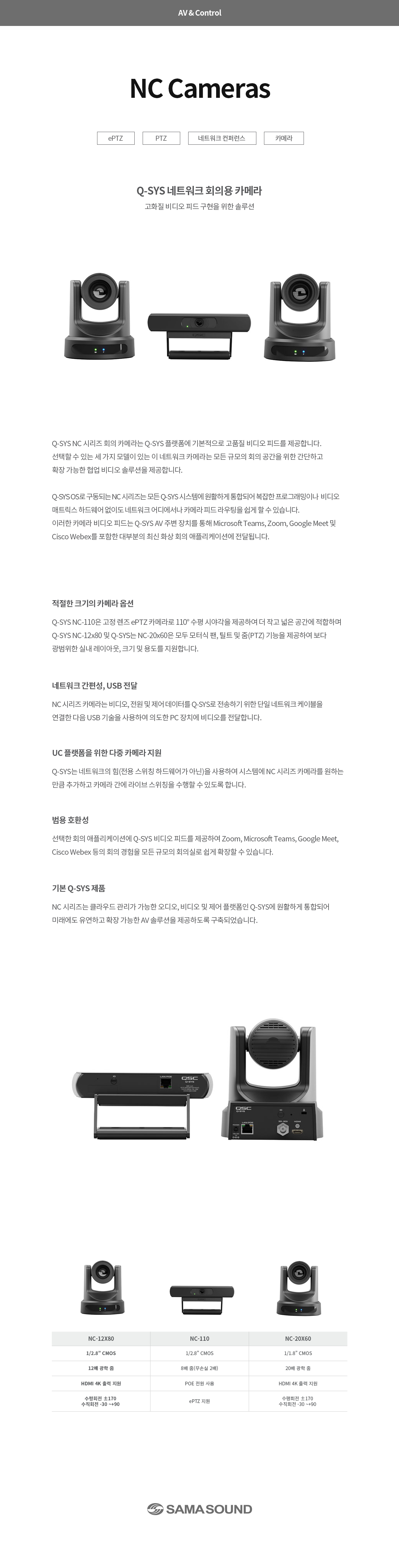 NC Camera Series - Q-SYS 네트워크 회의용 카메라
