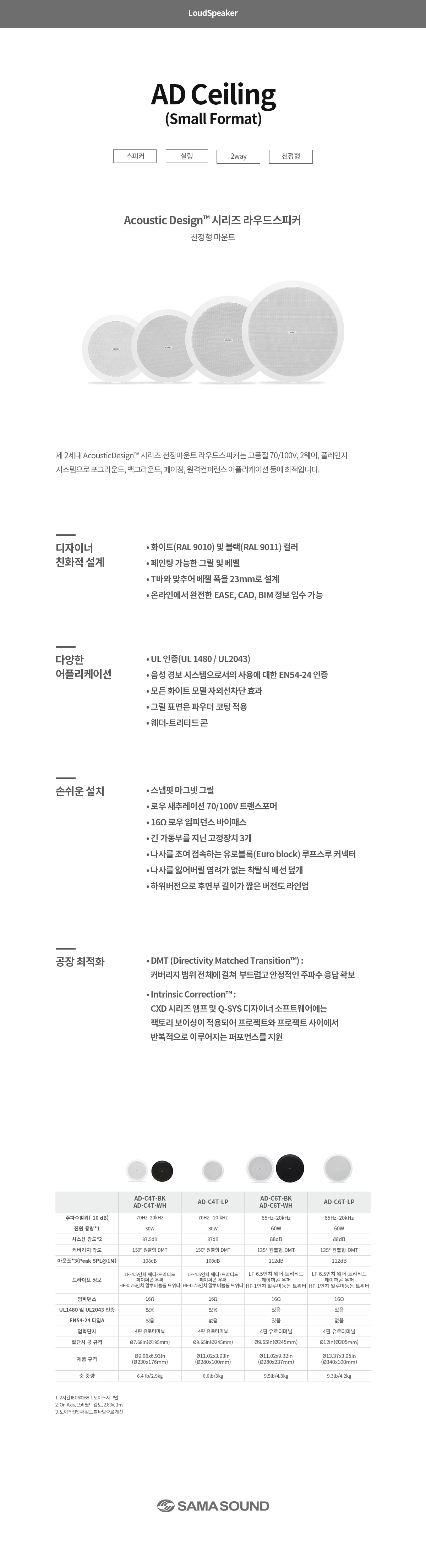AD Ceiling Small Format - AcousticDesign™ 시리즈 라우드스피커(천정형)