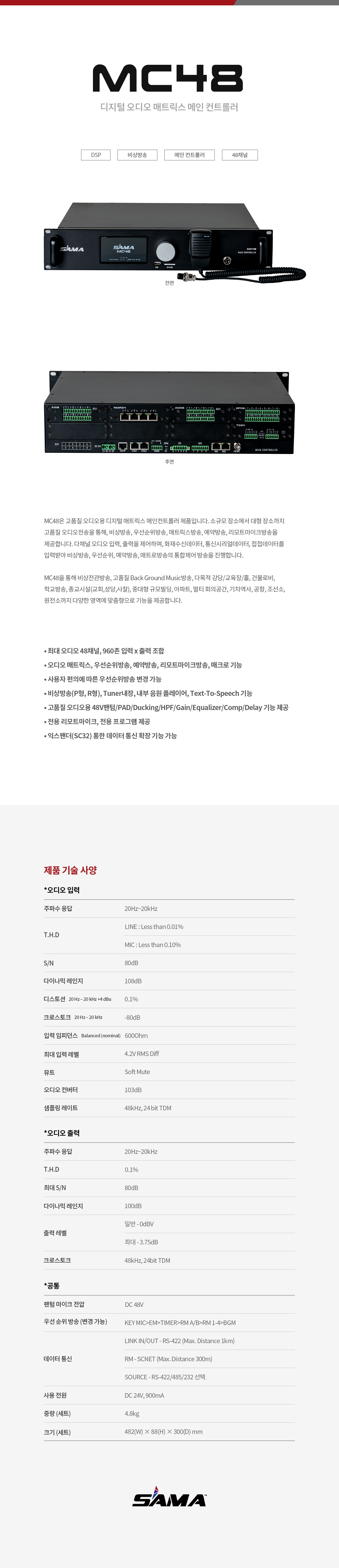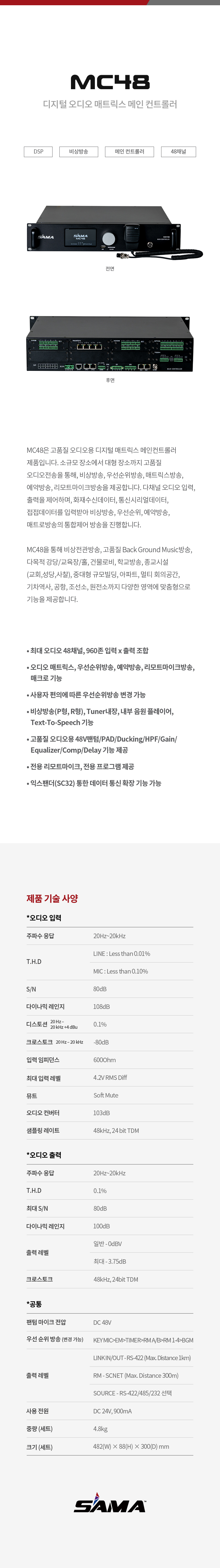 MC48은 고품질 오디오용 디지털 매트릭스 메인컨트롤러 제품입니다.